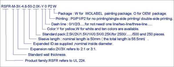 RSFR-M manga marcador é um tubo achatado, termoencolhível destinados à identificação de fios e cabos arnês. Ele também pode ser usado para aplicações em que características de perigo contra incêndio limitado são necessárias. Quando RSFR é impressa com Woer recomendada impressoras e fitas de tinta, as marcas permaneçam legíveis, durável, mesmo quando exposto a abrasão, solventes de limpeza agressivos e fluidos industriais.